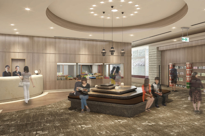 今回のリニューアルでは、より旅行を楽しんでいただけるよう、館内のいたるところにストーリー性を持たせたデザインを取り入れます。伊香保の各名所の観光を満喫したあとも、館内で伊香保の街並みの趣を感じることのできる、和の情緒とモダンが融合した宿へ生まれ変わりました。