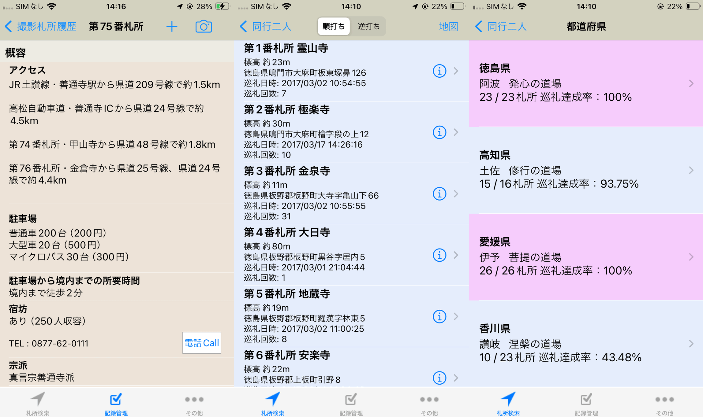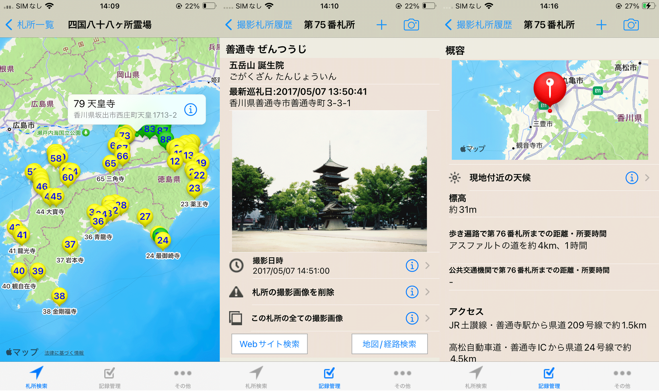 四国八十八ヶ所霊場の巡礼をサポートするアプリケーションです。