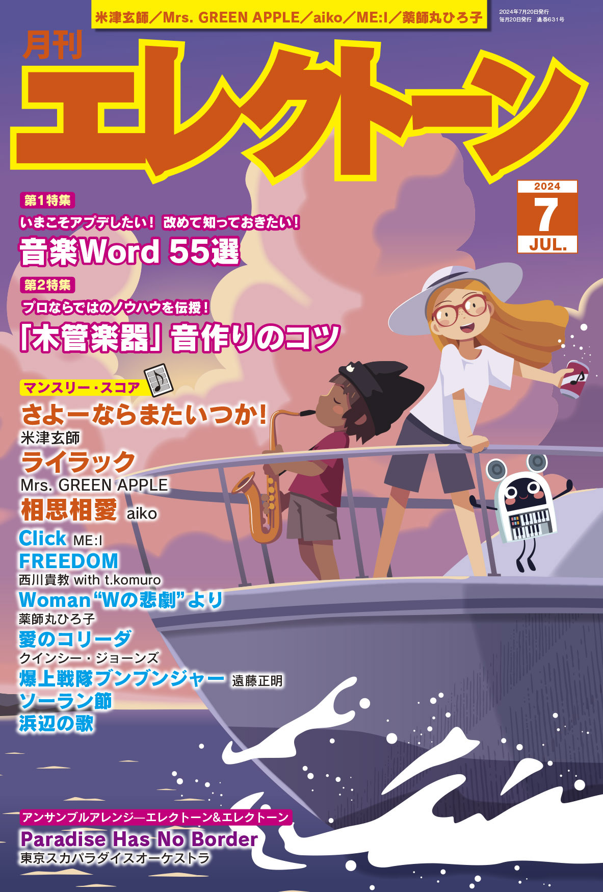 月刊エレクトーン2024年7月号は、【いまこそアプデしたい! 改めて知っておきたい!~音楽Word 55選】と【プロならではのノウハウを伝授!~「木管楽器」音作りのコツ】の2大特集です。
