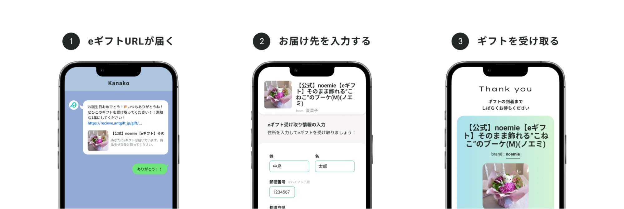 eギフトURLから住所を入力いただくだけで対象商品が届きます