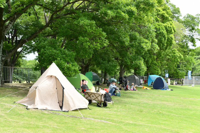 会場内の芝生広場はテントやレジャーシートを広げてピクニックを楽しむのに最適です。心地よい木陰でゆったり休憩しつつ、自分のペースでイベントを楽しもう!