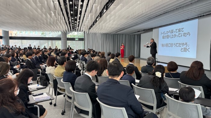 ●吉本新喜劇の川畑泰史氏が、地方出身や「ぼっち」の新入生に向けて大阪人対策講座を開催し、新入生に大阪独特の文化や、大阪人とのコミュニケーション術を伝授