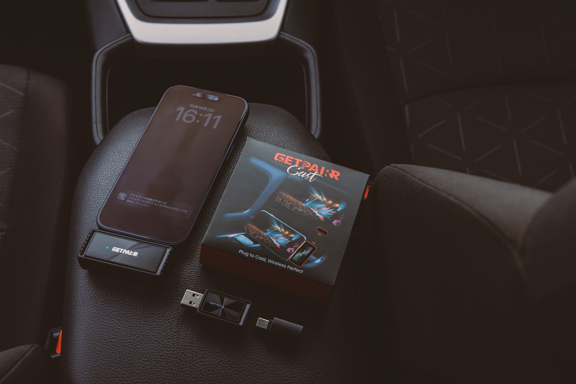 スマホの映像をケーブルなしで車載ディスプレイへ映せる“ワイヤレスミラーリング”に特化したアダプター「GETPAIRR Mirror Cast」です。