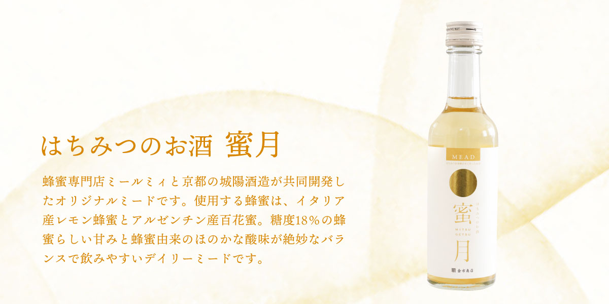 はちみつに酵母と水だけを加え、発酵させた醸造酒。ヨーロッパなどでは古くから親しまれ、日本でも愛好者が増えています。はちみつらしい甘い味わいが特徴で、アルコール度数は5~16%まで様々。食前や食後に飲みたい濃厚な極甘口のものから、食事とも合わせられるすっきりテイストまで様々な種類があり、使用するはちみつの種類や水、熟成期間や国によって味わいが異なる、知れば知るほど奥の深いお酒です。