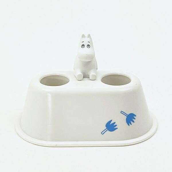 こちらのムーミン 歯ブラシスタンドにはダブルのタイプもございます。ムーミンが穴の間に座って歯ブラシを見守っているようにも見えます。家族やカップルで一緒につかえるのもうれしいです。サイズ:4.6cm×7.1cm×4cm 素材:PVC