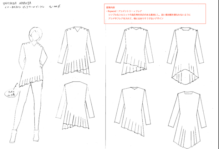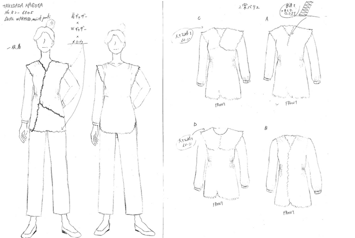 keiko氏からシニア特有の悩みや体形の変化などのアドバイスを受けた学生がデザインの草案を起案。