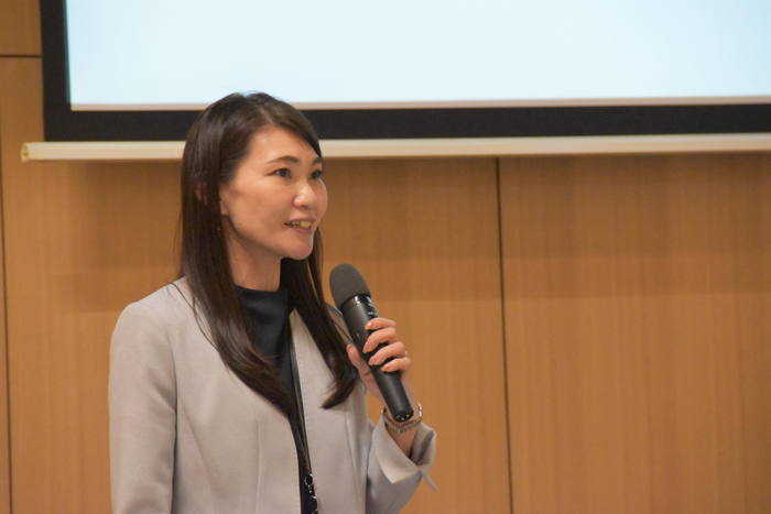 外国語学部は、2026年4月から「国際キャリア専攻」と「国際英語専攻」の2つの専攻が新設されます。司会を務めた池沙弥教授は「英語力を身につけたいと外国語学部に入学してくれる学生さんが多くいますが、『国際キャリア』『世界で羽ばたく』をよりイメージしてもらえるよう、水越大使をお招きしました」と趣旨を説明し、オープンレクチャーが始まりました。
