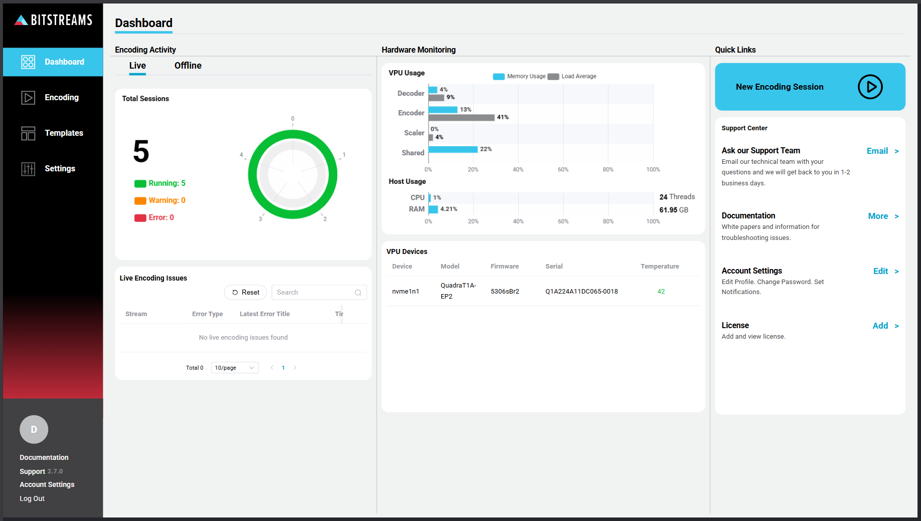 さらに、専門知識がなくても直感的に操作できるWebアプリケーション「Bitstreams™」を提供しており、中小企業や開発リソースの限られた現場でも導入しやすく、映像配信のハードルを大幅に下げます。