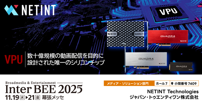 ジャパン・トゥエンティワン株式会社(本社:愛知県豊橋市、以下:J21)は、2025年11月19日(水)~21日(金)に幕張メッセにて開催される「Inter BEE 2025」に、ネットイント社(NETINT Technologies, Inc.、本社:カナダ)と共同出展します。
