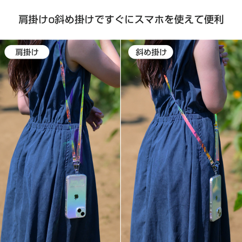 また、付属のストラップホルダーをケース内に入れることでロングストラップを使用することができ、斜め掛けや肩掛けにして持つことが可能です。