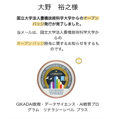 オープンバッジは知識やスキルをデジタル上で証明するサービスです。大学や資格認定団体、企業が多くのオープンバッジを発行しており、日本でも様々な団体からの発行が始まりました。本学でも特定の履修コースを修了した際に、その証明としてバッジが学生に配布されています。ブロックチェーン技術を取り入れており、実質的に偽造・改ざんが不可能になっています。