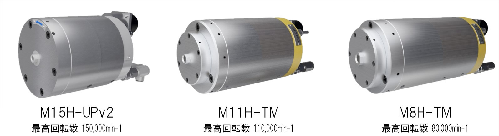 高出力、高剛性はもとより、低環境負荷、静音化を追及した新型高周波スピンドル 「Hシリーズ」 を搭載。用途に応じて以下より選択可能です。