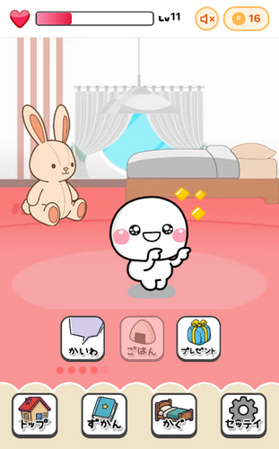 本作「しろまるのおへや」は、誰もが一度は見たことがある「しろまる」をお世話しながらコミュニケーションしていく育成ゲームになります。