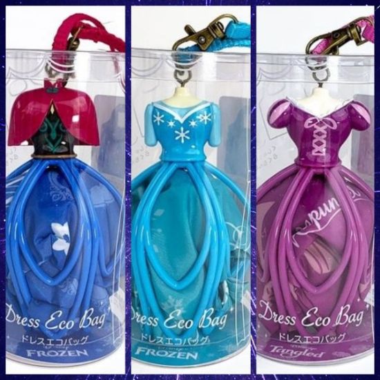 まずは、アナと雪の女王から、アナのドレス型エコバッグをご紹介します。くるっと簡単にまとめて収納するだけでドレスっぽい形になります。とっても可愛いですよね♪