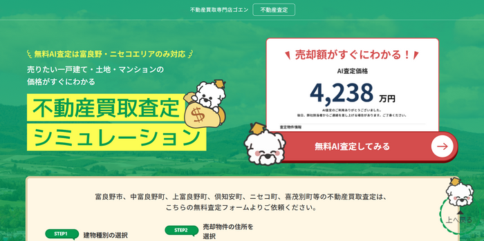 2. 無料AI査定:富良野・ニセコの不動産価格を60秒で確認