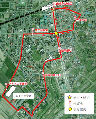 本実証運行は、JR当別駅南口から当別町立とうべつ学園を経由した初めての市街地ルートとなります。人や車の往来が多く道路環境が厳しい市街地エリアで、技術面や社会受容性面の両方の観点から、データ収集や分析を行い、公共交通としての自動運転EVバス導入に必要な検証を行います。