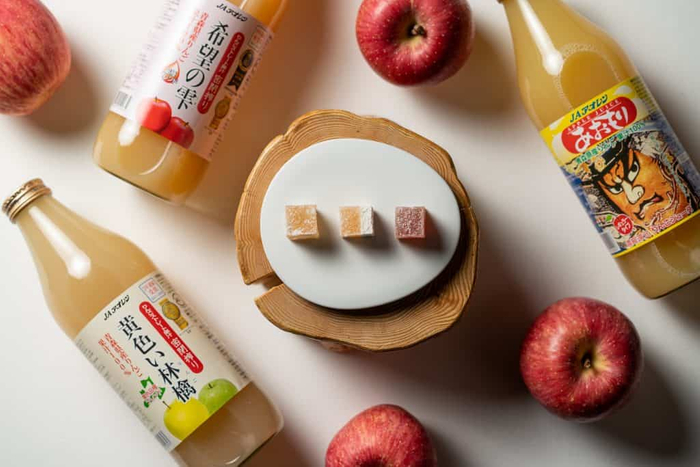 本取り組みで製品化したのは、フランスの伝統菓子「パート・ド・フリュイ(*1)」です。このお菓子は、果物が豊富であったフランス、オーベルニュ地方が発祥と言われており、限られた季節にしか食せない果物を、いつでも果物の価値が損なわれぬよう考え出されました。今回、このお菓子に使用する「JAアオレン」のりんごジュースは、「希望の雫」、「黄色い林檎」、「あおもりねぶたレギュラータイプ」の3種類です。ぎゅっと凝縮されたりんごジュースの美味しさを最大限生かし、風味から食感までこだわった3種類を用意しました。