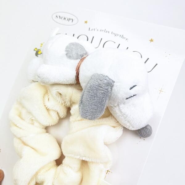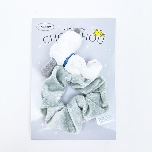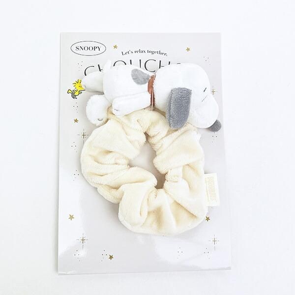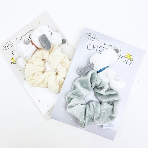 フワフワの生地と、アイボリーとグレーのアイスカラーがとてもキュートな、スヌーピーのシュシュです。