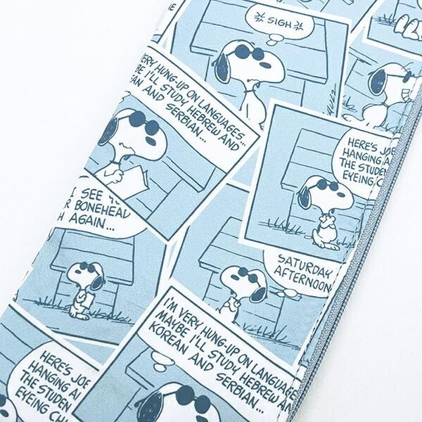 落ち着いたブルーをベースに、ジョー・クールをメインにしたクールなデザイン。先ほどのウッドストック柄とは雰囲気ががらりと変わり、大人っぽさを感じる仕上がりになっています。