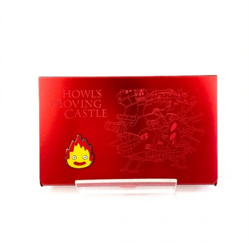 表面にはハウルのお城が細かく再現されています。レーザー加工ってすごいなぁと思うほどの精巧さはさすがです♪可愛いカルシファーのメタルチャームもポイント!