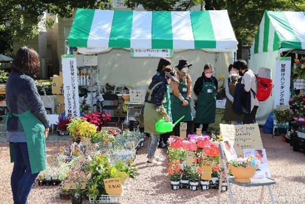 秋空の下でガーデンコンテストの作品展示や花苗配布、キッチンカー出店などをお楽しみいただけます。
