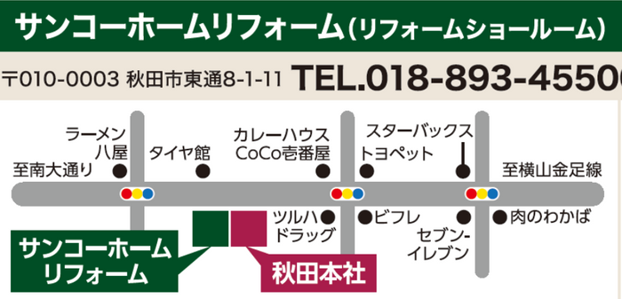 サンコーホーム秋田本社の隣に、リフォームに特化した実物展示・体感型ショールーム『サンコーホームリフォーム』が完成しました。
