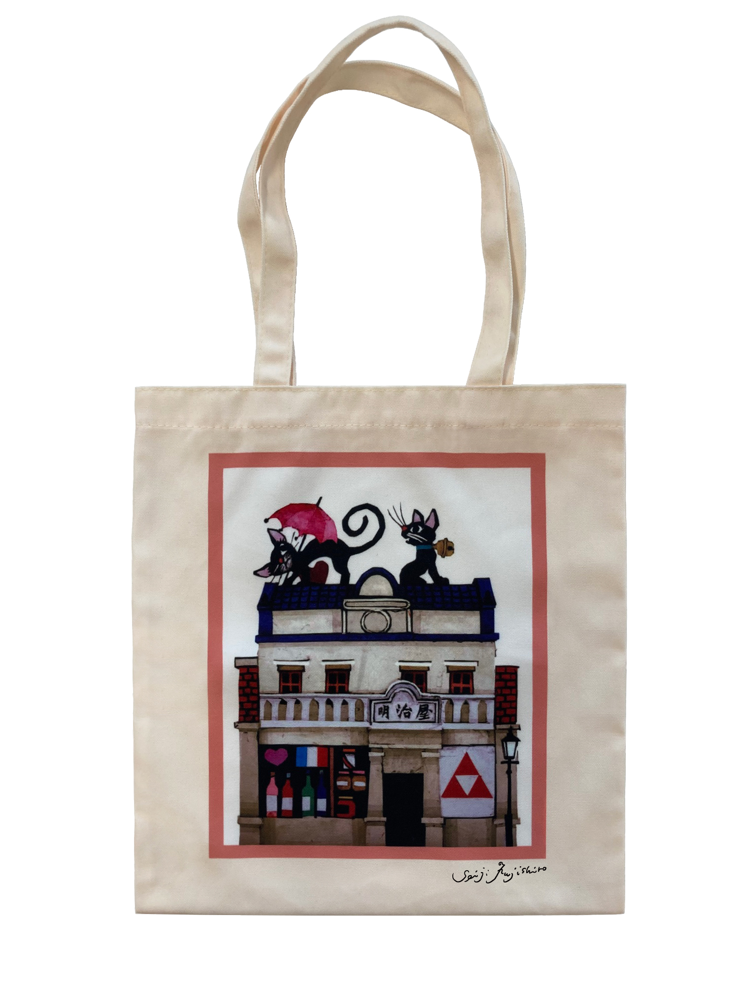 2004年当時銀座にあった「明治屋銀座ストアー」がモデルになっており、絵を通じてより多くの方々に笑顔をお届けできたらという想いから今回のコラボバッグが実現しました。