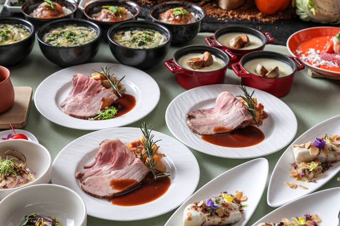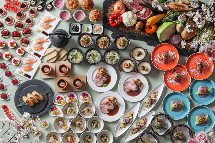 「シェフズ ライブ キッチン」では春の代名詞「桜」をメインに、お花見に来た気分を味わえるような「SAKURA-IRO」の料理がブッフェ台にならびます。