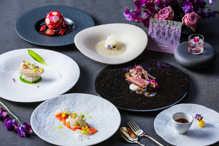 「グラマシースイート」では「藤の花」をテーマに春の山菜を織り交ぜた日本の春と共に味わうフレンチコースを展開。