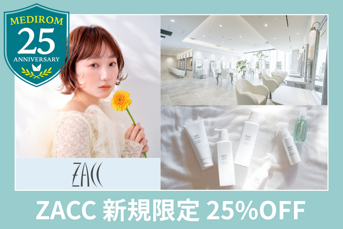 株式会社メディロム(本社:東京都港区、代表取締役:江口康二、米国Nasdaq上場 NASDAQ: MRM、以下「当社」)は今年で創業25周年を迎えました。この度、創業25周年を記念して、メディロムグループが運営する美容室「ZACC」(表参道の「ZACC raffine」「ZACC vie」、銀座の「ZACC GINZA」)にて、新規ご利用のお客様を対象に全メニュー25%OFFキャンペーンを実施いたします。