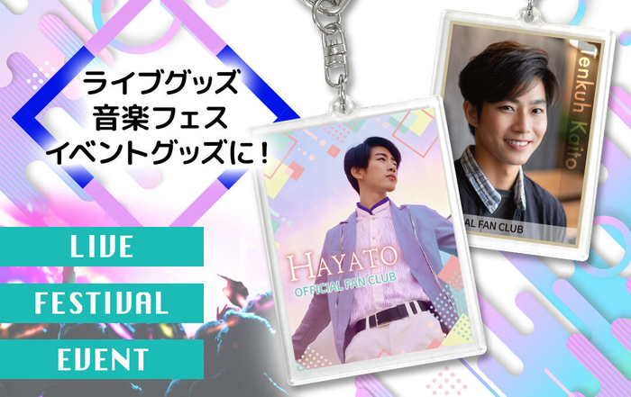 憧れのアーティストやアイドル、芸能人のオリジナルグッズはファンならいくつでも持っていたいもの。話題の推し活グッズにもぴったりなオリジナル アクリルキーホルダー(アクキー)は、ライブグッズ・コンサートグッズ、芸能タレント・お笑い芸人さんなどのオフィシャルグッズなどにも最適なアイテムです。小型&軽量ですので物販スペースを圧迫せず、各会場への輸送も簡単です。音楽フェスやイベントの公式グッズなどにも大変オススメです。