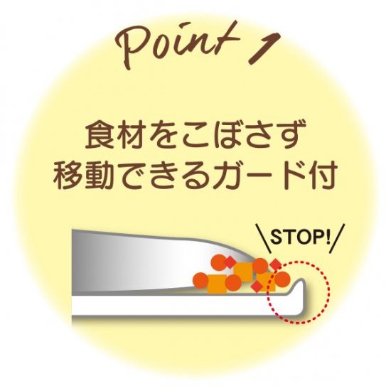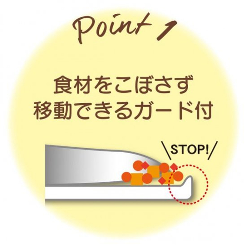 ガードが付いているので食材がこぼれにくいです。フライパンに食材を移すときにも嬉しい機能です。