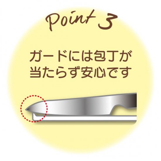 ガード部分には包丁が当たりにくい構造なので、安心◎