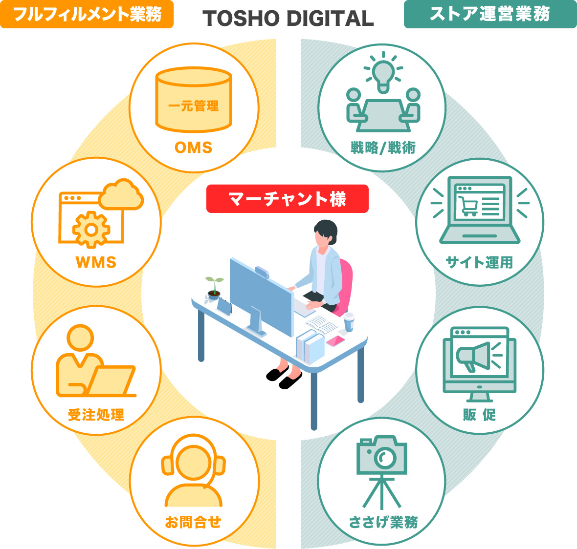 ECサイトの運営業務は、商品企画やサイト制作、マーケティング等のフロント業務と、注文受付、物流倉庫業務、カスタマーサービス等のバックエンド業務に分類されます。