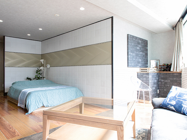 2Fは「現代のシティーホテル」をテーマに高級感を演出しました。特注サイズの大型ベッドやガラス貼りのシャワールームなど、こだわりのホテルに仕上がっています。