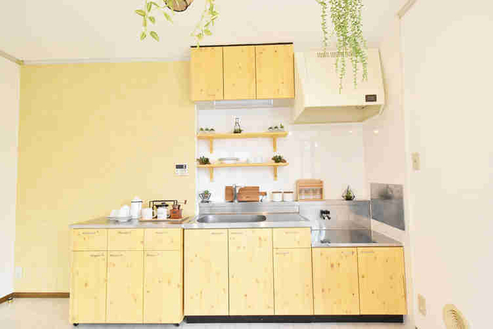 一方、当物件のリノベーションは「無垢材」「漆喰」といった『自然素材』の材料をできる限り使用した「ナチュラルテイスト」に特化した部屋となっています。