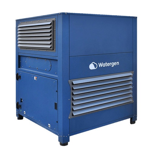 この度の実証実験で使用するAWGは1日最大1,000Lの造水能力を持つWatergen社(イスラエル)の中型機(GEN-M PRO)で、発電機との組合せによって完全オフグリッドな造水ユニットとなっています。日本での中型機の長期運用による造水量のデータ蓄積を主目的としつつ、造水した水はトイレ水洗用のほか手指の洗浄や壁面緑化用の芝生への給水にも活用する計画です。金子港湾としては従来の水の運搬作業の必要がなくなり、さらなる安全でエコな工事現場の運営を目指します。