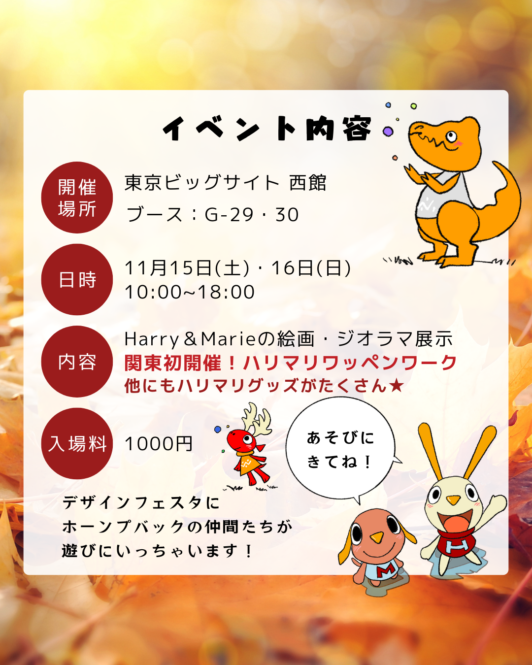 【関東初開催】大人気の「ハリマリワッペンワーク」『デザインフェスタvol.62』にHarry&Marieが出展!アジア最大級のアートイベント!11月15日・16日に東京ビッグサイトで開催!