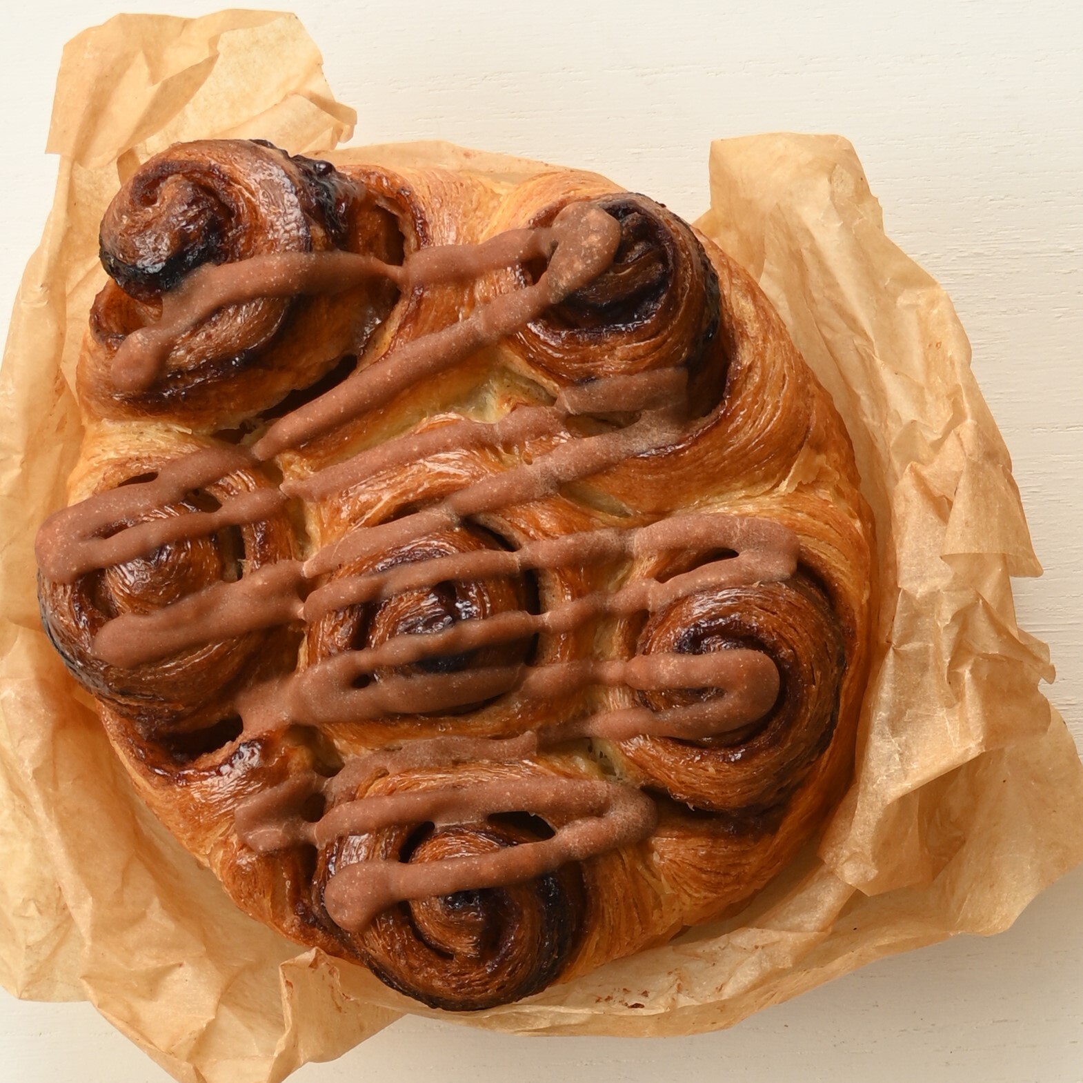 デンマーク人が大好きなシナモンロールを品名のローズ(バラ)の花に見立てて焼き上げました。表面にシナモングレーズを絞り香り豊かに仕上げています。