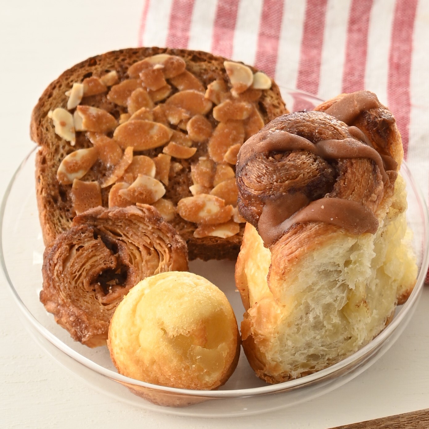 エイブルスキーバ、シナモンローズ、マンデルフロランタン、カネルスネイル。デンマーク由来のスイーツの盛り合わせです。コーヒー、紅茶と合わせるのがおすすめです。