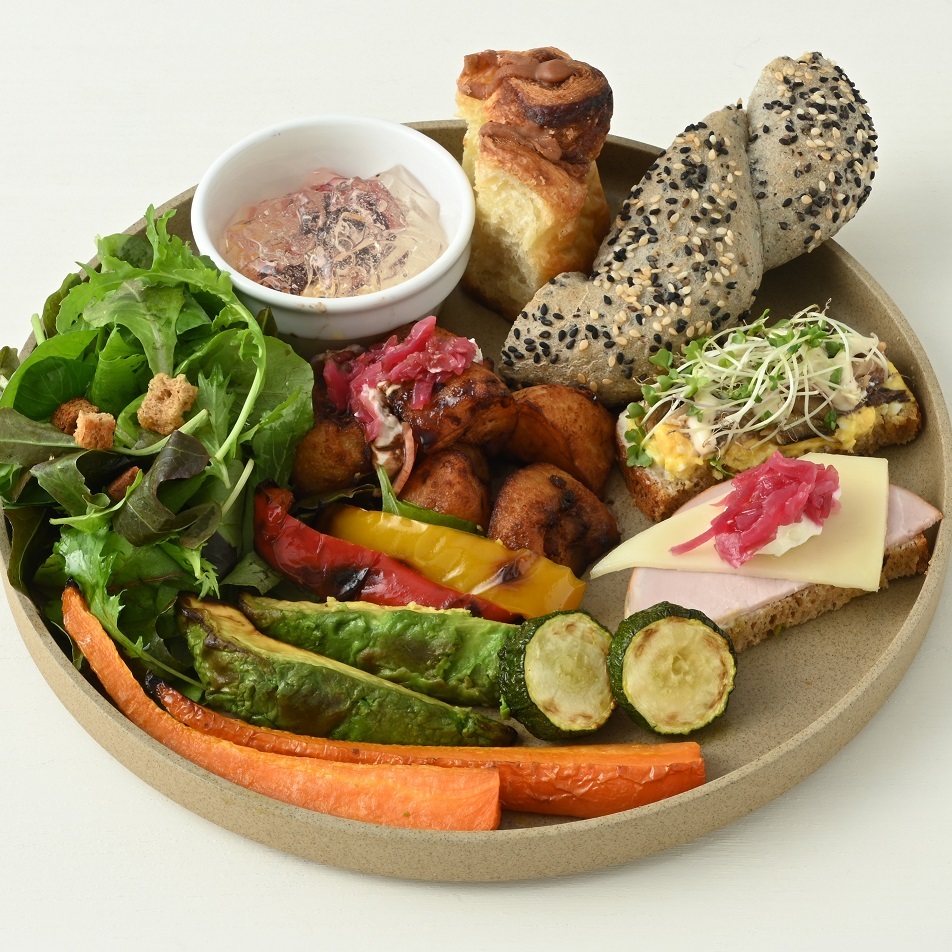 デンマークの代表的な料理「スメアブロ」のほか、シナモンロールやたっぷりのグリル野菜など、デンマークを感じられるメニューを集めました。デザートにエルダーフラワーゼリーを添えた満足感のあるランチプレートです。