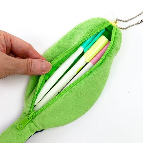グリーンなペンケースです。頭の部分にボールチェーンが付いているのでバッグなどに取り付け可能◎ペン以外にもいろいろと収納出来そうな、便利な縦長サイズですね。お顔は刺繍で上品に♪