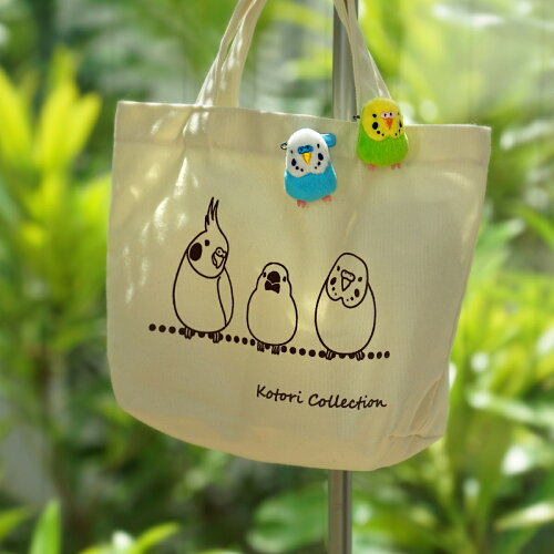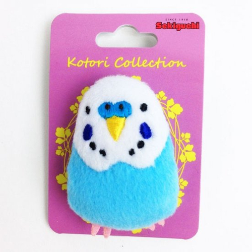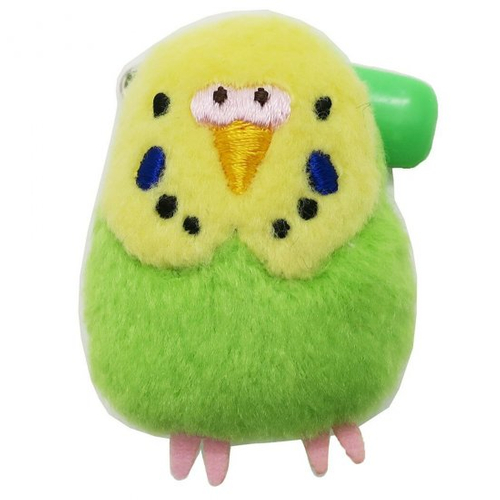 つぎにご紹介するのはコロンと可愛いぬいぐるみバッジ。バッグに付けるとインコがとまっているようです♪
