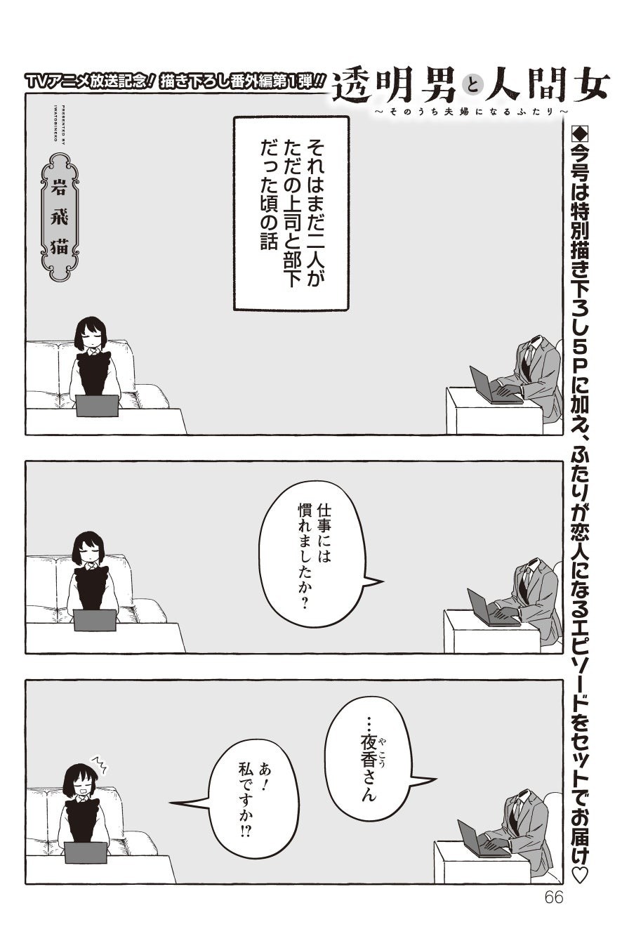 TOKYO MXほかにてTVアニメが絶賛放送中の『透明男と人間女~そのうち夫婦になるふたり~』。放送を記念し、描き下ろし特別番外編5pを掲載!