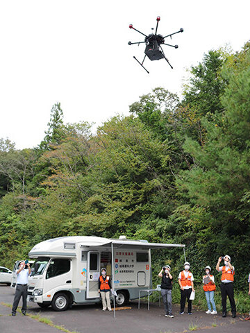 EDAC 岐阜薬科大学主催モバイルファーマシー(災害対策移動薬局車両)へドローンを活用した医薬品供給に関する実証実験にHec-Eyeを使用し研究協力