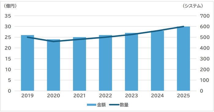 FEMSの市場規模は、2022年のメーカー出荷金額が約26億円(ハードウェア/ソフトウェアの出荷金額を対象とし、設計費や工事費は含まない)、導入数が約500システムであったと推定される。