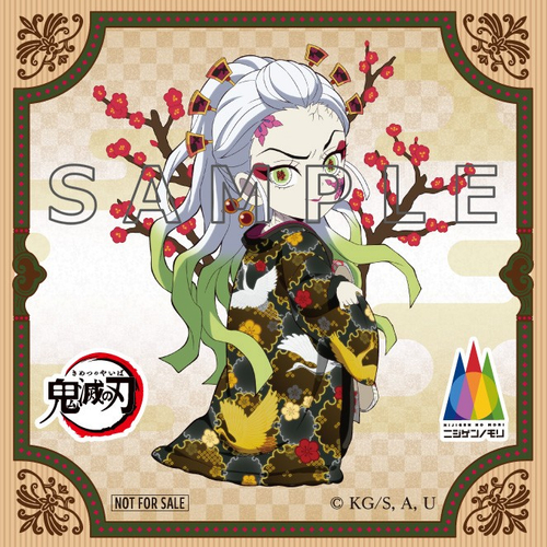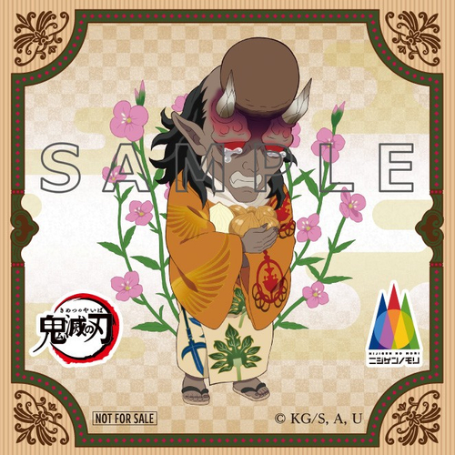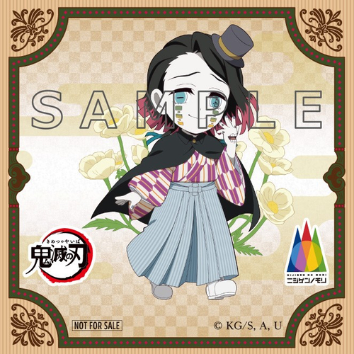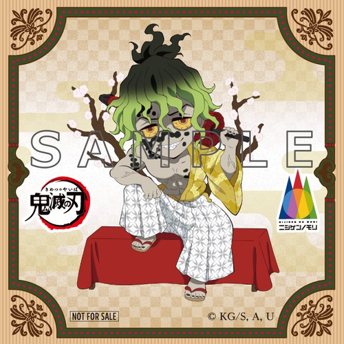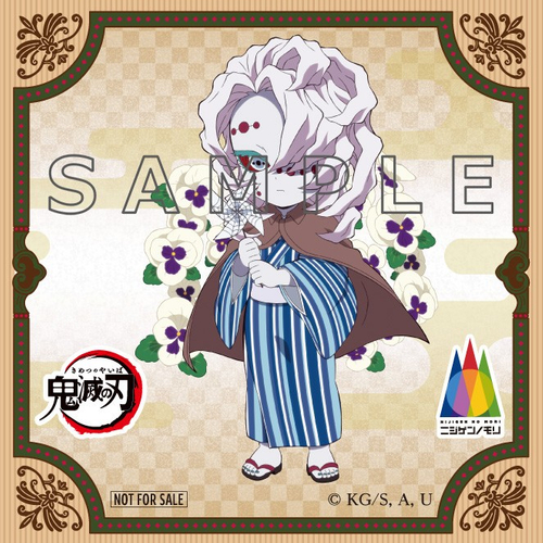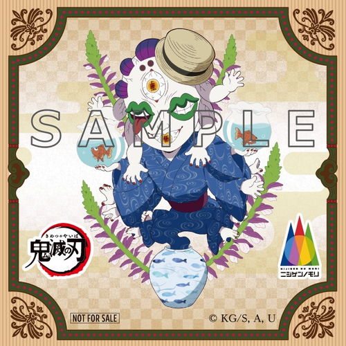 投稿画面をご提示いただくと【堕姫、妓夫太郎、半天狗、玉壺】の4柄から1投稿につき1枚ランダムでお渡しいたします。