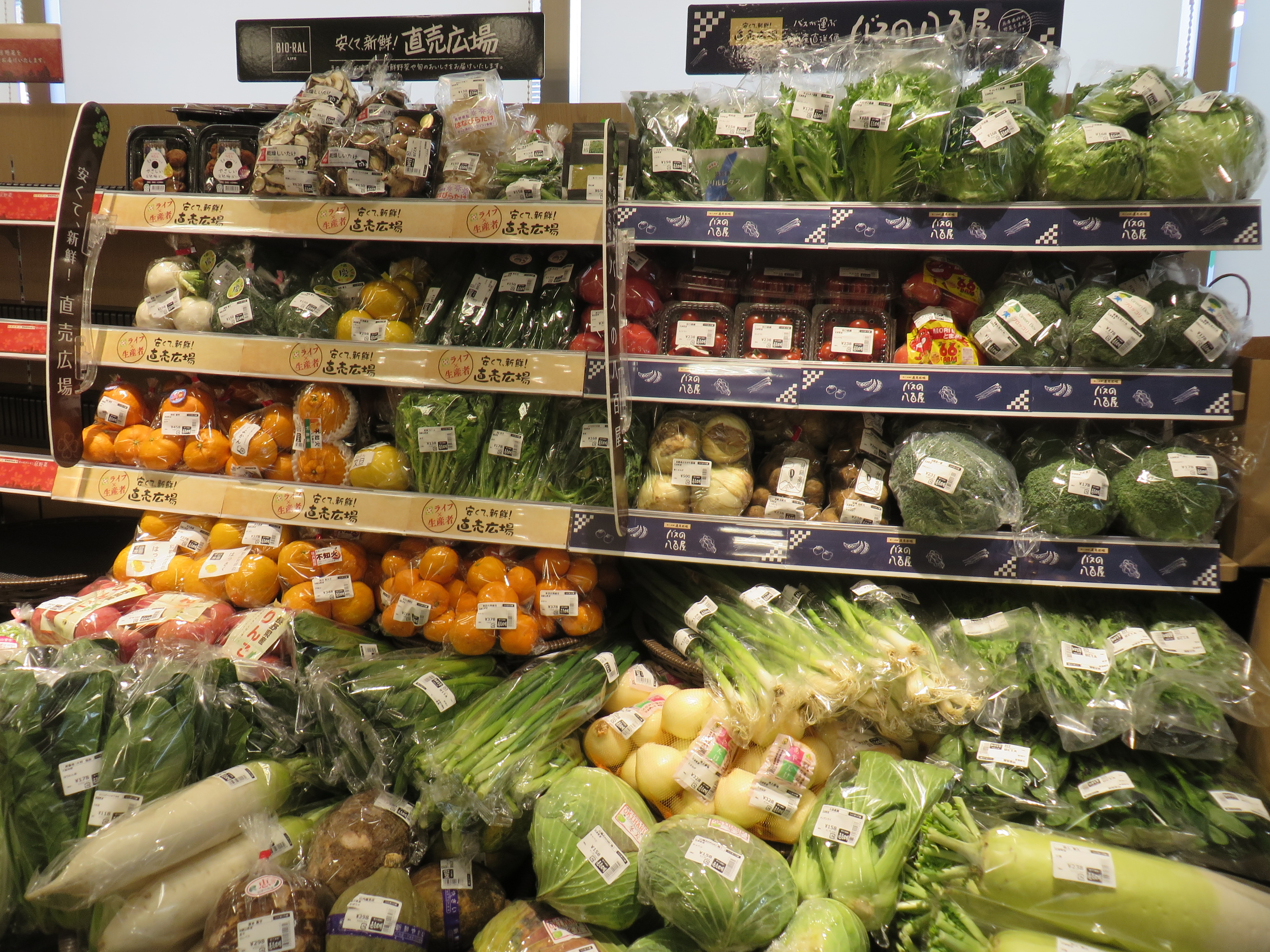 関西近郊野菜の「直売広場」と地元兵庫県産野菜の「バスの八百屋」から、新鮮な野菜を販売いたします。