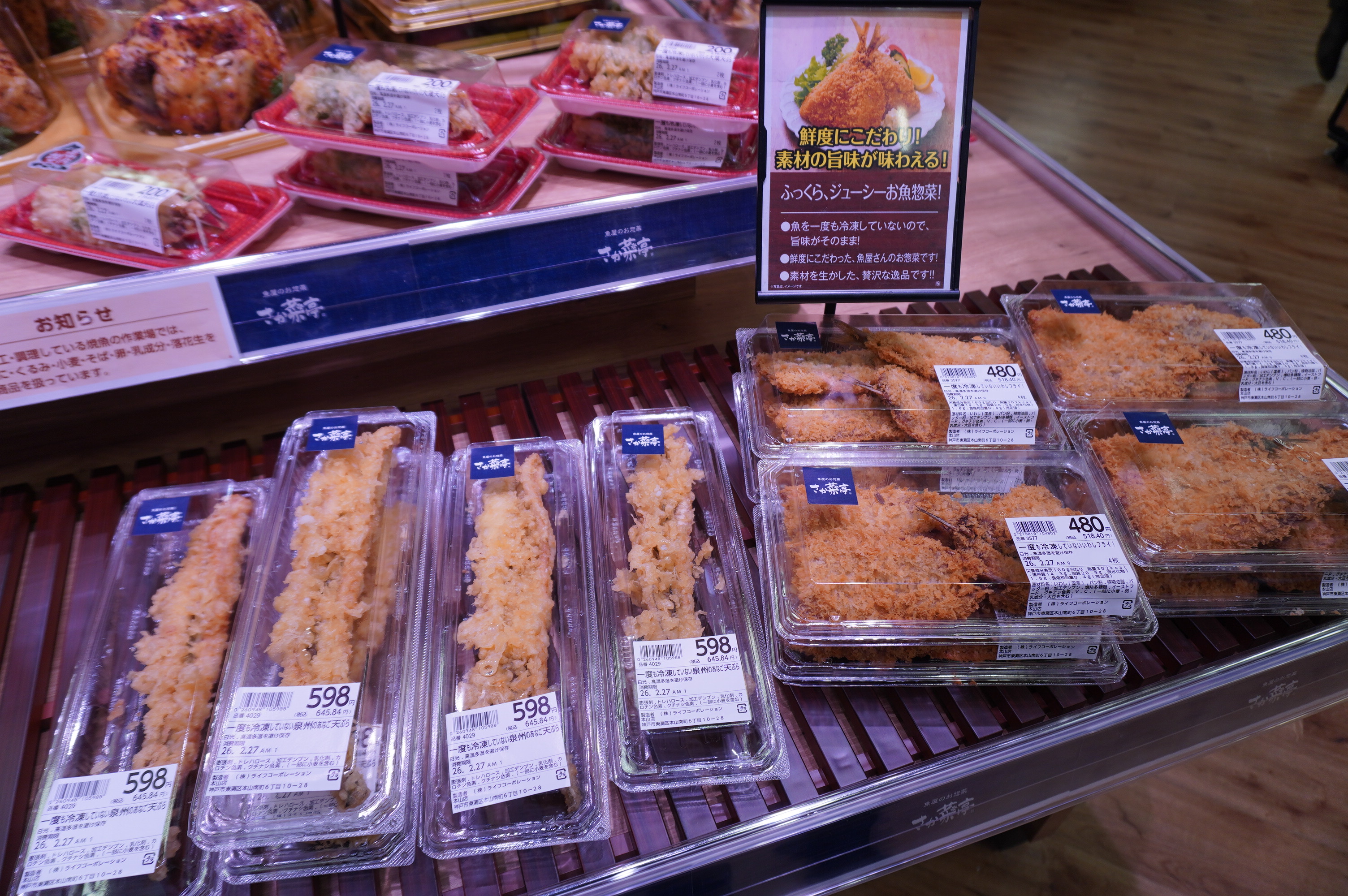 一度も冷凍していない生魚を使用したお魚惣菜。お魚ならではの食感・味わいをお楽しみいただける焼魚・揚げ物をご提供いたします。