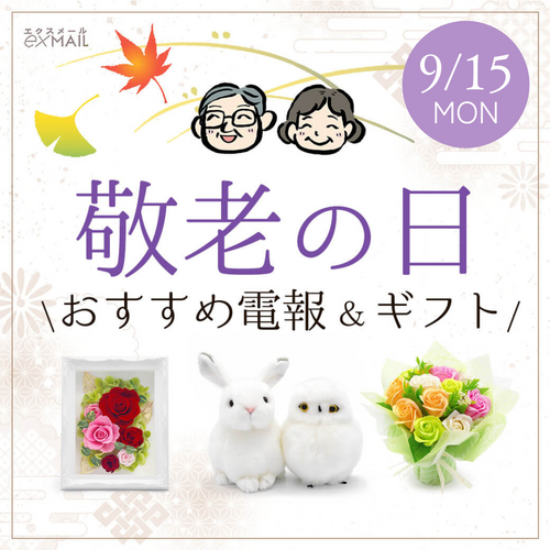 株式会社シー・モア(所在地:大阪市北区大淀中、代表:佐合 曜)の運営するインターネットの電報屋さん「電報屋のエクスメール」では、敬老の日に向けて「言葉」とギフトを組み合わせた敬老の日向け電報ギフト特集&電報コラムを公開しました。